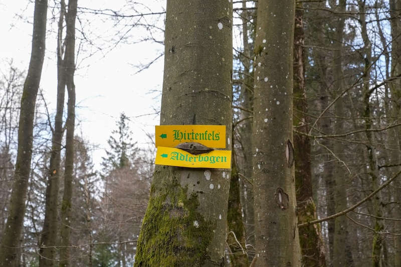 Nach etwa 30 Minuten gemütlichen Gehens, teils über Felsenboden, öffnet sich der Wald – und der Weg mündet schließlich in das Plateau am Moltkefelsen. Von hier sind es nur noch wenige Schritte bis zum Adlerbogen.