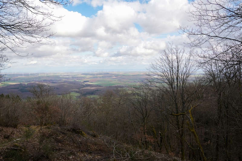 Der Blick nach Osten ist besonders beeindruckend: Bei klarem Wetter reicht die Aussicht weit über die Rheinebene hinweg bis in den Odenwald. Die Landschaft breitet sich wie ein Relief aus – Felder, Ortschaften und sanfte Hügel zeichnen sich plastisch im Licht ab. An diesem Februartag lag eine fast meditative Ruhe über der Szene.