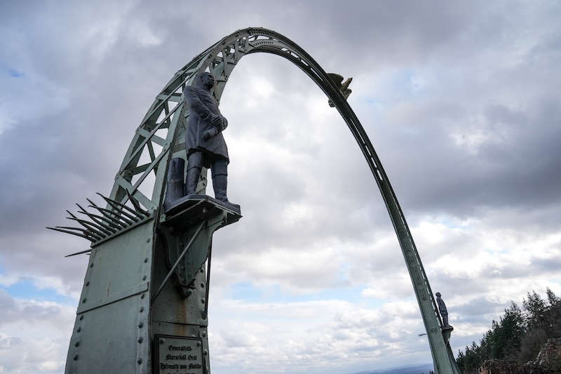 Der Adlerbogen wurde zu Ehren von Reichskanzler Otto von Bismarck (1815-1898) und der Leistungen des Generalfeldmarschalls Graf Helmuth von Moltke (1800-1891) errichtet. Ihre beiden Skulpturen sind Bestandteil des Adlerbogens.