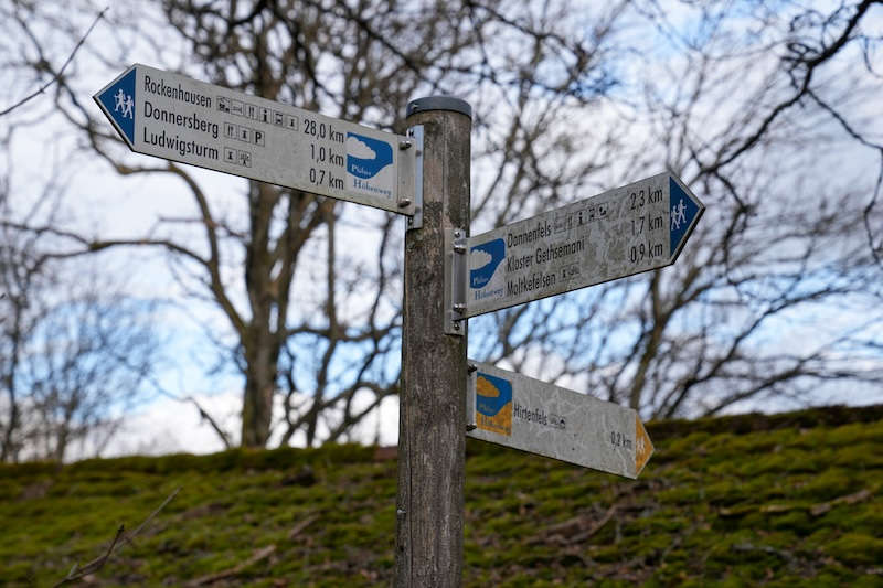 Ausgangspunkt unserer Wanderung war der Parkplatz Donnersberg. Von dort folgt man zunächst dem gut ausgeschilderten Weg in Richtung Moltkefelsen. Der Pfad führt durch lichten Mischwald, sanft absteigend, auf einigermaßen begehbarem Untergrund. Bereits nach kurzer Zeit trifft man auf den „Keltischen Skulpturenweg“, der den Abstieg kulturell bereichert.