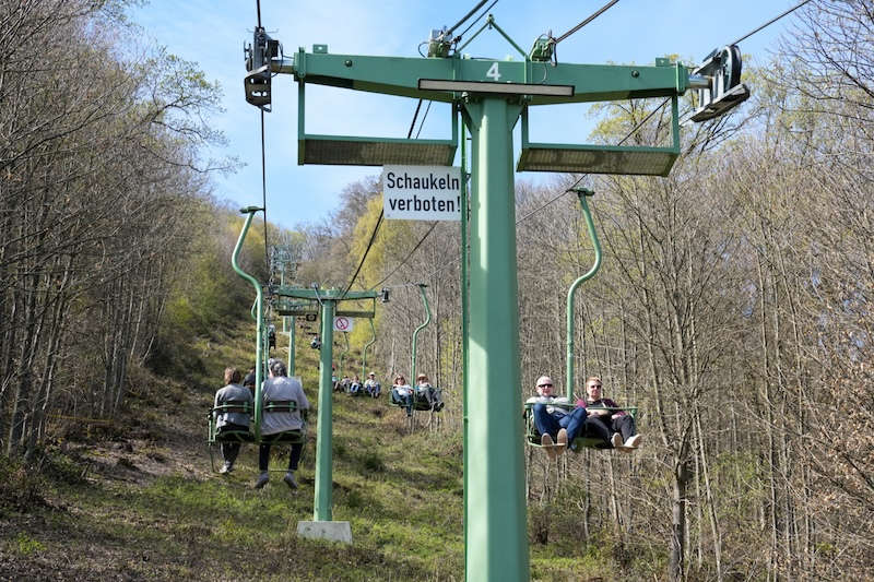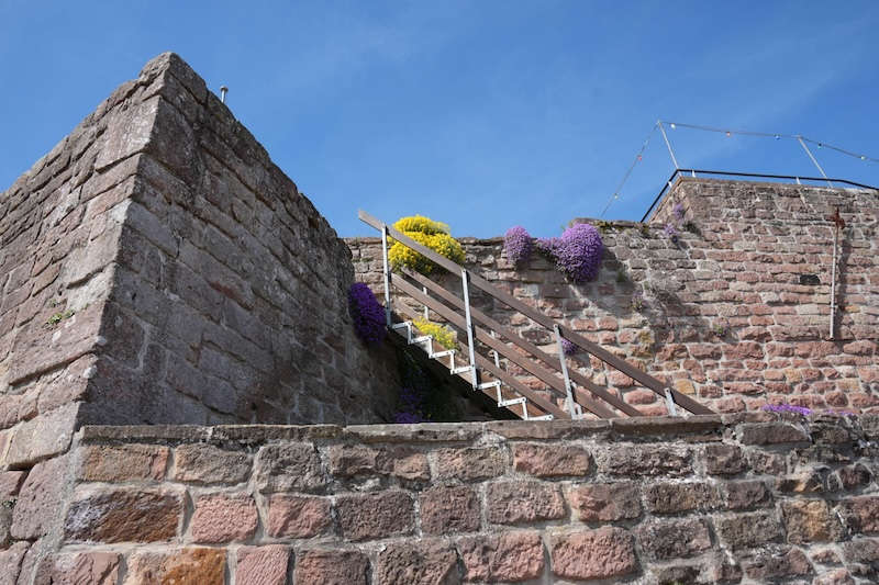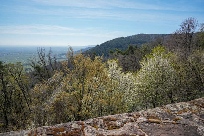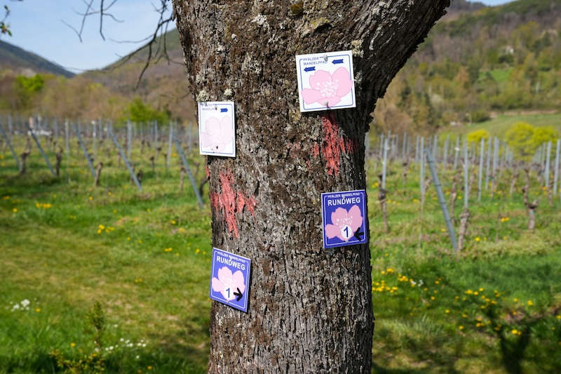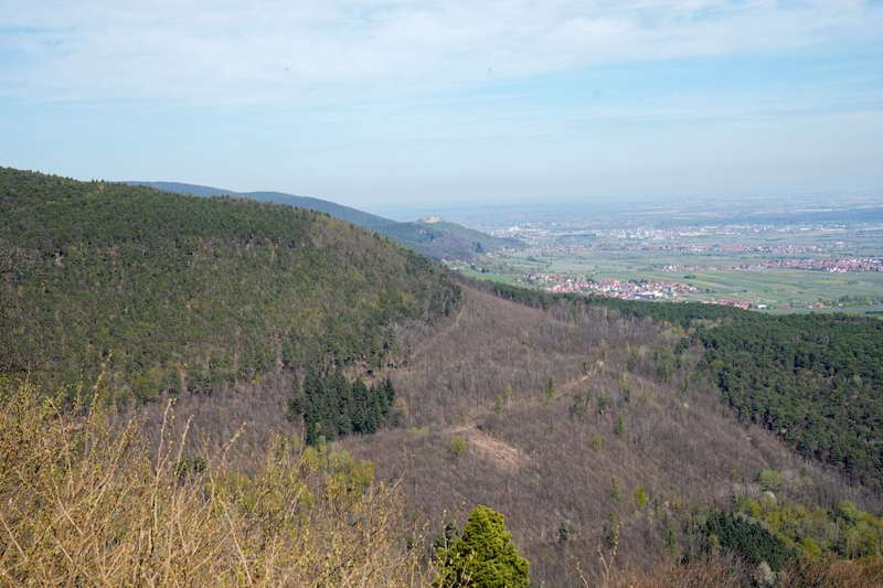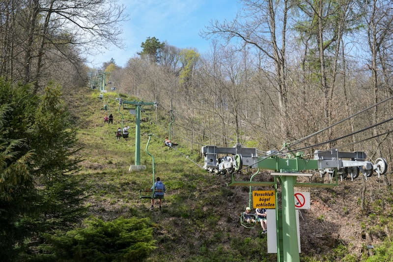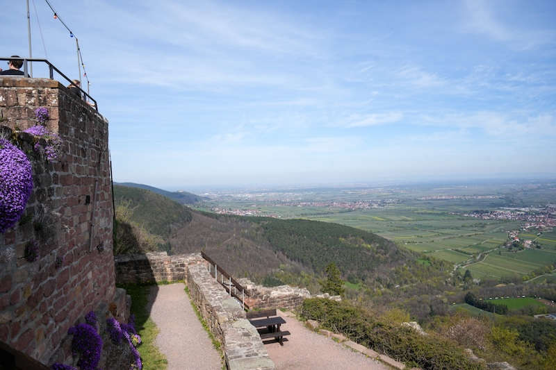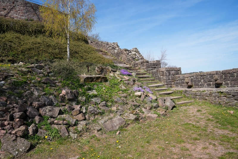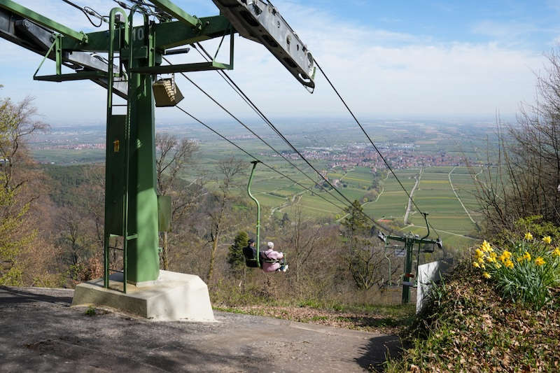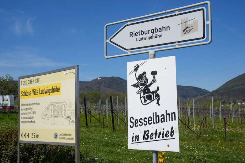 Von dort führte der Weg zunächst entlang der bekannten Mandelmeile über die Kreisstraße K64 hinauf zur Villa Ludwigshöhe. Statt eines schweißtreibenden Aufstiegs entschieden sich die Wanderer anschließend für eine komfortable Alternative: die Fahrt mit der Rietburgbahn, die einen mühelos zur Burgruine bringt.