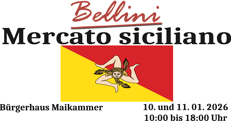 Maikammer – Maikammer wird im Januar 2026 zum Treffpunkt mediterraner Lebensfreude: Am 10. und 11. Januar 2026 lädt der „Mercato siciliano“ jeweils von 10:00 bis 18:00 Uhr in das Bürgerhaus Maikammer ein. Unter dem Motto „Erleben Sie Sizilien mitten in der Pfalz!“ erwartet die Besucherinnen und Besucher ein stimmungsvoller Markt mit authentischem sizilianischem Flair.