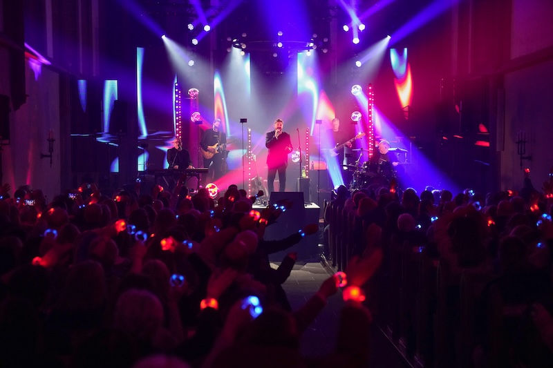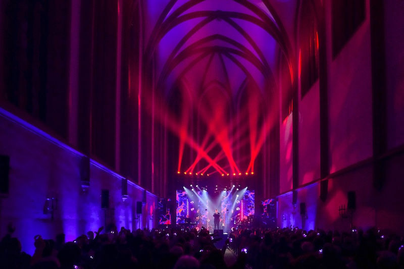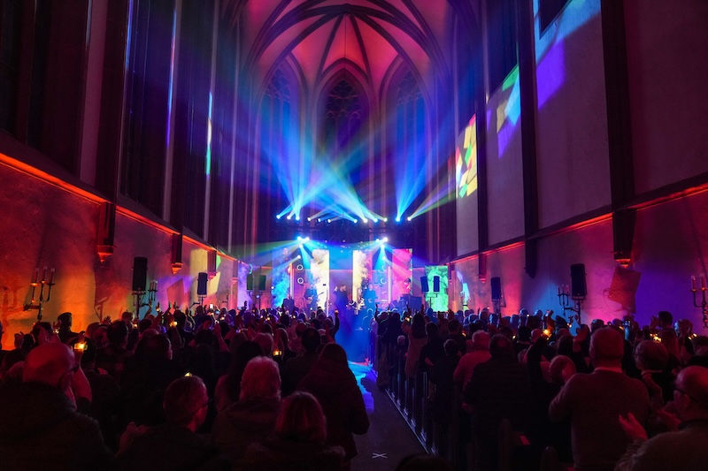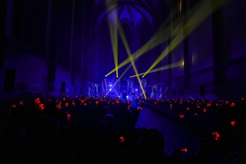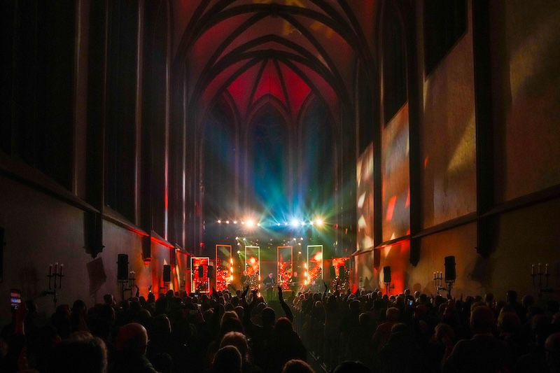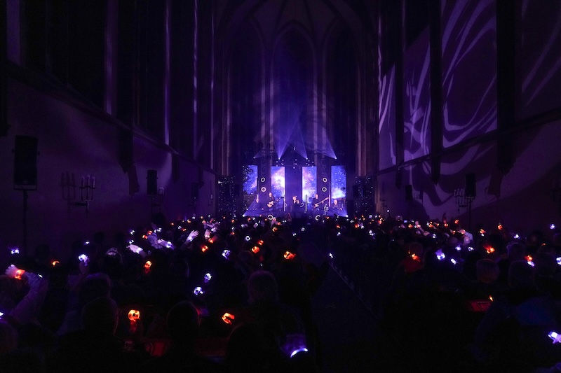 Was „Church in Colors“ jedoch über ein klassisches Konzert hinaushebt, ist das eindrucksvolle Lichtkonzept. Modernste LED-Technik, darunter eine transparente Videowand, tauchte das Gotteshaus in faszinierende Farben. Projektionen und fein abgestimmte Lichteffekte setzten die Musik visuell in Szene. LED-Armbänder machten sogar das Publikum selbst zum Teil des Gesamtkunstwerks – die Kirche wurde zum pulsierenden Raum aus Klang und Licht.