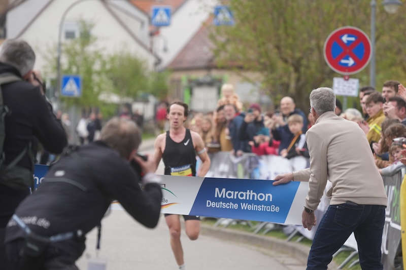 Bockenheim an der Weinstraße – Mit einer Zeit von 2:36:11 Stunden lief Eric Nies vom TV Maikammer am Sonntag, 12.04.2026, über die Ziellinie am Haus der Deutschen Weinstraße. Tom Holzmann (LLG Wonnegau) siegte beim Halbmarathon (1:08:48 Stunden).