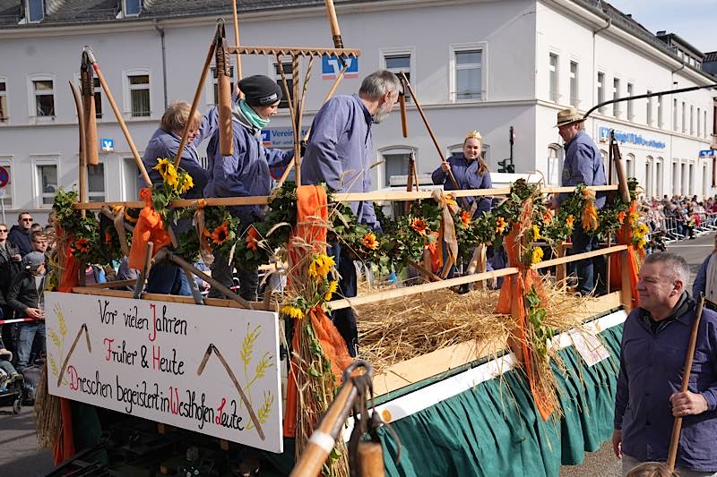 Mit dem „Großen Preis des Winzerfestumzugs“ in Höhe von 2.100 Euro, gestiftet von den Sponsoren der Einzelpreise, wurde ausgezeichnet: Die Landjugend „Brulljesmacher“ Kallstadt (Nummer 14) und der Förderverein Duttweiler (Nummer 57) mit der Weinprinzessin Eva. Jede dieser zwei Zugnummern erhält 1.050 Euro.