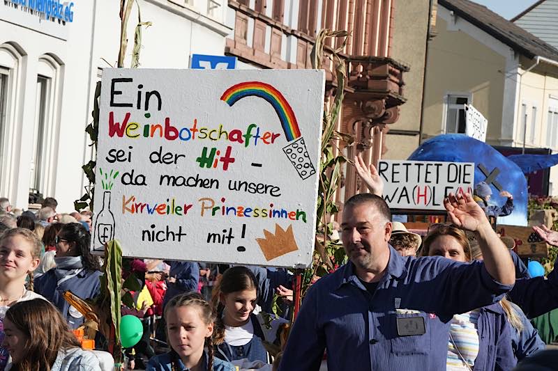 Die Landjugend Kirrweiler (Nummer 85) konnte sich beim Publikum-Voting an die Spitze setzen und darf sich nun über 500 Euro, gestiftet von der Tourist, Kongreß und Saalbau GmbH und der Weinbruderschaft der Pfalz, freuen. Sie erhalten eine Gewinnerplakette, die für die kommenden Jahre am Festwagen montiert werden kann.