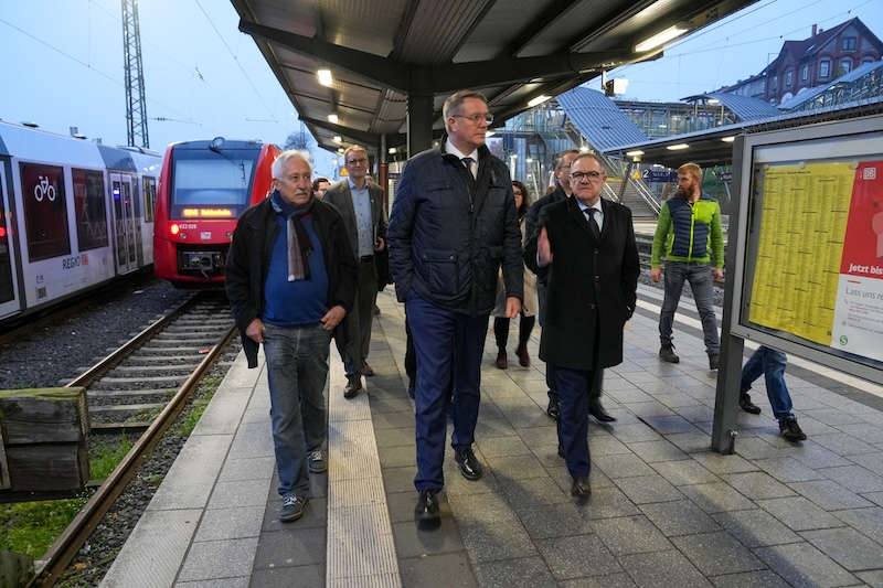 Gemeinsam mit Vertretern des Bahnhofsmanagements und der Projektleitung überzeugten sich Alexander Schweitzer, Ministerpräsident des Landes Rheinland-Pfalz, und Stefan Schwinn, Leiter Regionalbereich Mitte der DB InfraGO AG, Geschäftsbereich Personenbahnhöfe, heute persönlich vom Baufortschritt.