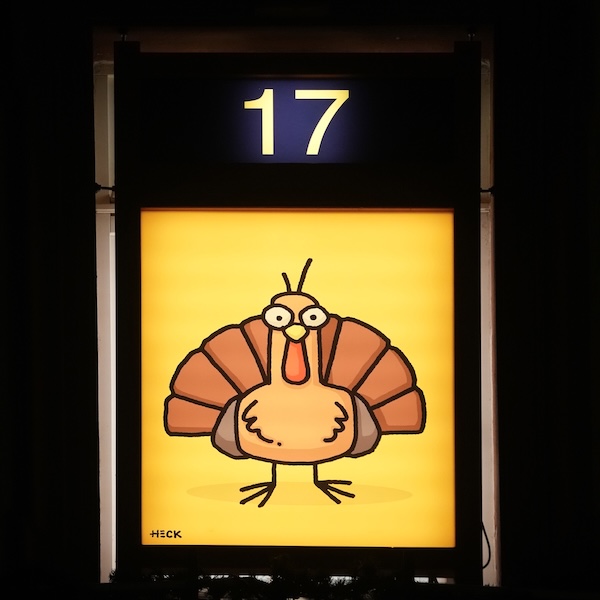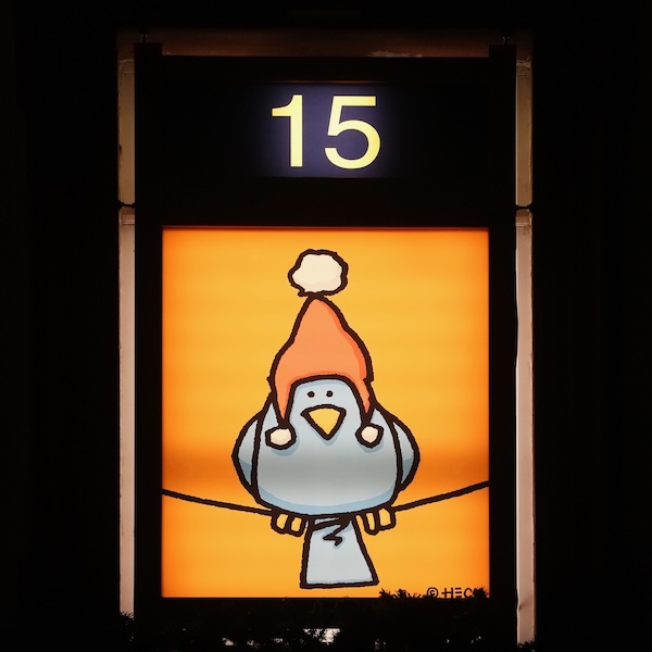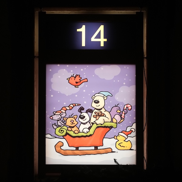 Neustadt an der Weinstraße – Am 01.12.2025 wurde das erste Bildmotiv des New Yorker Künstlers Ed Heck im XXL-Adventskalender enthüllt und beleuchtet. Am heutigen Mittwoch, 17.12.2025, war das Bild 17 dran.