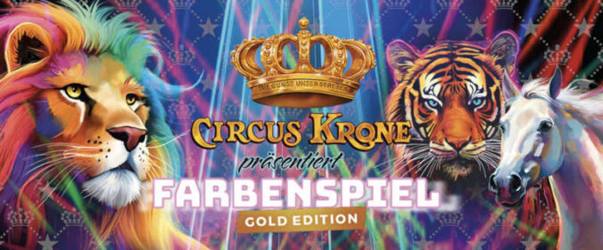 Kaiserslautern – Der Circus Krone lädt ein zu seinem aufregenden Sommertourneeprogramm „Farbenspiel – Gold Edition“ im brandneuen Chapiteau des Circus Krone! Präsentiert wird ein internationales Circusprogramm auf höchstem Niveau. Freuen Sie sich auf ein Feuerwerk der Circuskunst mit Weltklasseartisten, talentierten Newcomern, faszinierenden Tieren und mitreißenden Clowns. Erleben Sie 150 Minuten voller Lachen, Staunen und Nervenkitzel!