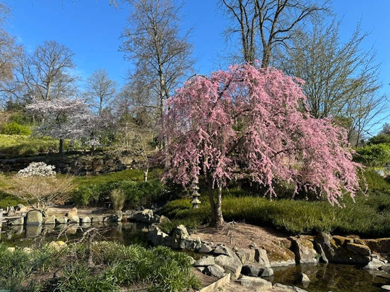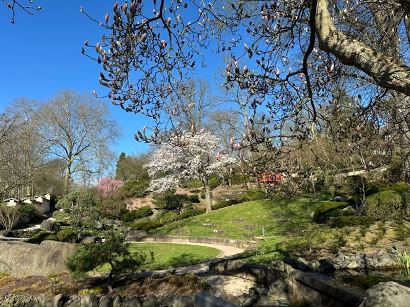 Passend dazu findet am 15.03.26 ab 11:00 Uhr der Kirschblüten-Lesespaziergang mit dem DUO WORTLAUT (Rainer Furch und Madeleine Giese) im Japanischen Garten statt. Dazu gibt es noch wenige Restkarten. Sie können sich per Mail an info@japanischergarten.de einen Platz für diesen kurzweiligen Spaziergang reservieren.
